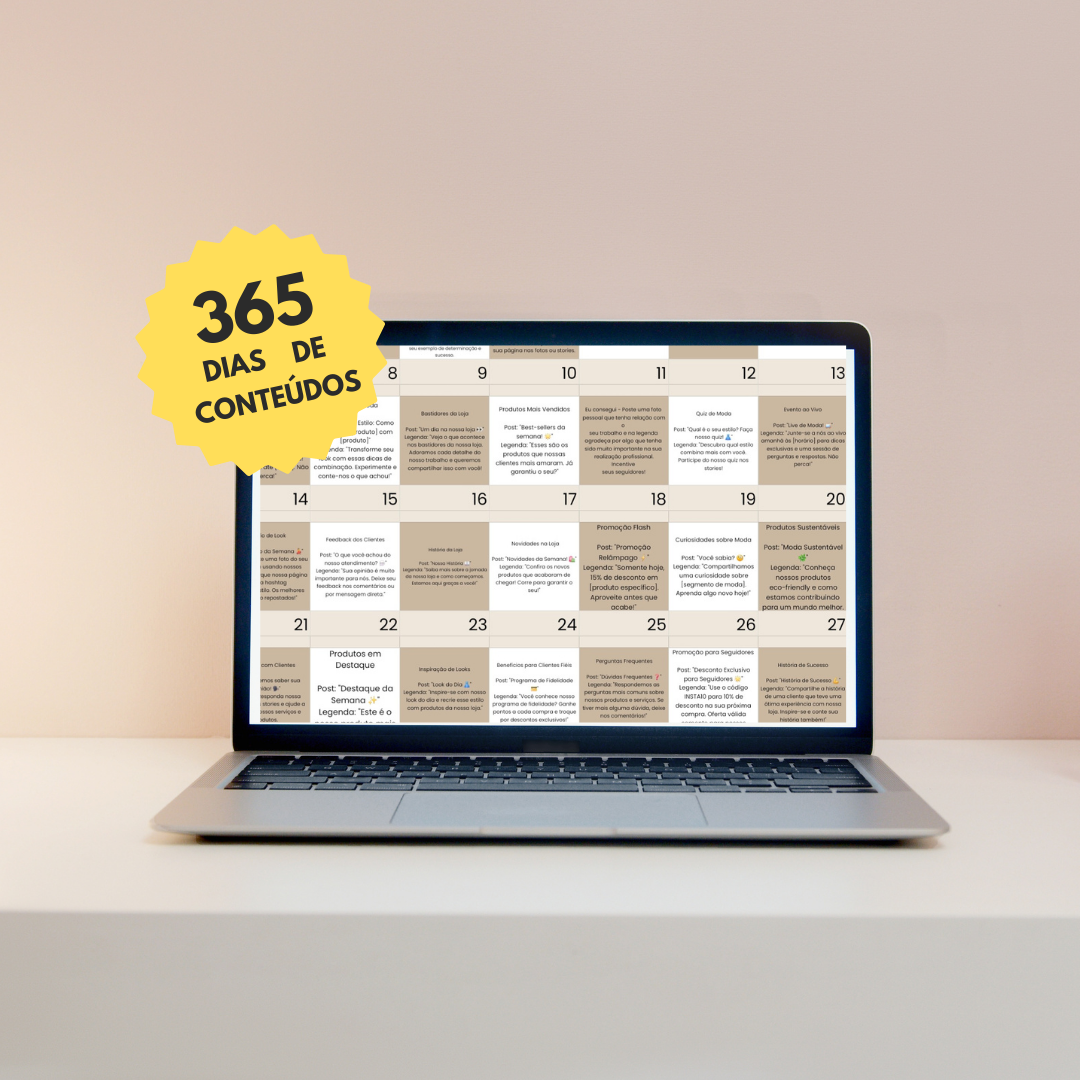 365 conteúdos prontos para o ano inteiro — pensados para gerar desejo e vendas, mesmo se você tiver poucos seguidores.